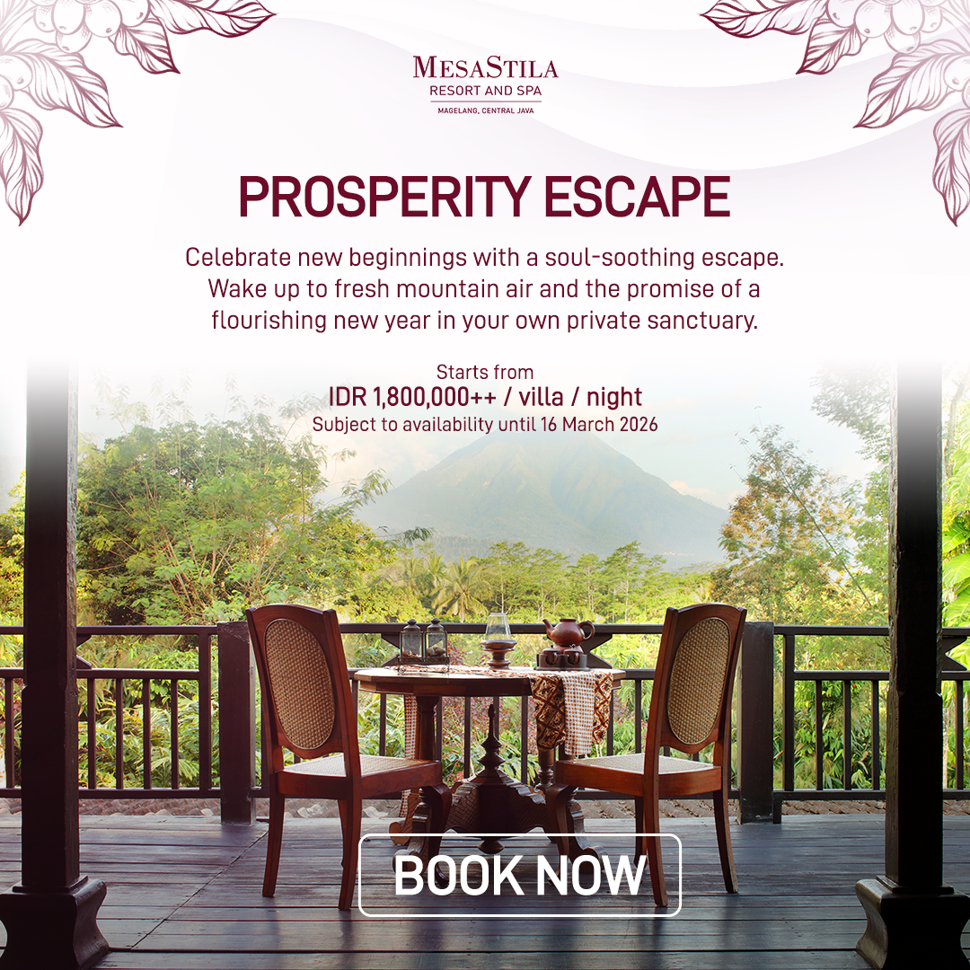 Set on a living 1928 Dutch coffee plantation and surrounded by eight majestic mountains, MesaStila offers an experience grounded in history and authenticity. Each villa is built from an original Javanese Joglo, carefully relocated, restored, and uniquely preserved, making no two villas exactly alike. Adding to its heritage, the Mayong railway charm station originally built in 1887 in Jepara was transported and thoughtfully transformed into the resort’s concierge area, blending colonial legacy with Javanese Warmth in a set ting that feels both historic and alive.